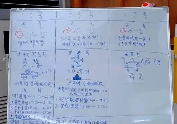 余宇涵的外形风格在初登场时也引发了一些讨论。但他做了一件极具说服力的事情。他为这次旅行准备了极为详尽的攻略,并将其工整地写满了黑板。