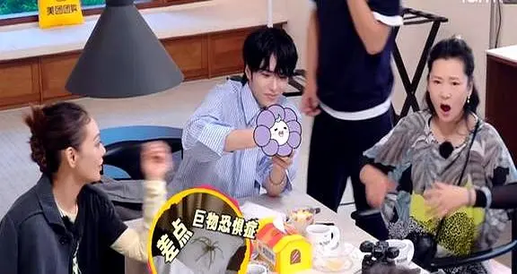 例如,在面对一只蜘蛛时,他用较为夸张的描述来表达自己的惊吓,或许是希望通过展现脆弱的一面来获得群体的关注与保护。然而,在场的几位资深前辈,对此的反应更多是平静和淡然。她们丰富的人生阅历,让她们对这种略带表演性质的情绪表达并不太感冒。